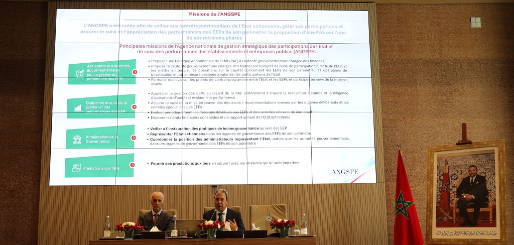 A cette occasion, M. Zaghnoun a partagé un diagnostic des dysfonctionnements structurels, soulevés notamment dans les rapports de la Cour des Comptes, qui constituent le point de départ de la réforme actuelle des EEP. Il a également présenté les missions de l’ANGSPE, son portefeuille, son périmètre d’intervention et ses orientations stratégiques de la politique actionnariale de l’Etat approuvées en Conseil des Ministres du 1er Juin 2024.